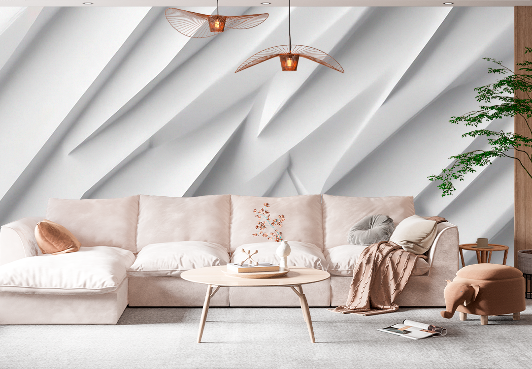 Dekoriere deine Wand mit diesem Weißes 3D-Fototapet, ideal zum Anbringen an deinem Lieblingsplatz zu Hause, um ihr eine schöne Note zu verleihen.
