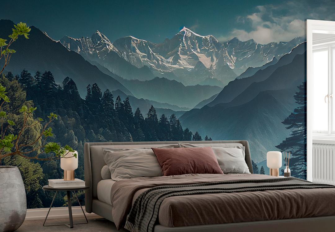 Dekoriere deine Wand mit diesem Waldlandschaft Fototapete, ideal zum Anbringen an deinem Lieblingsplatz zu Hause, um ihr eine schöne Note zu verleihen.