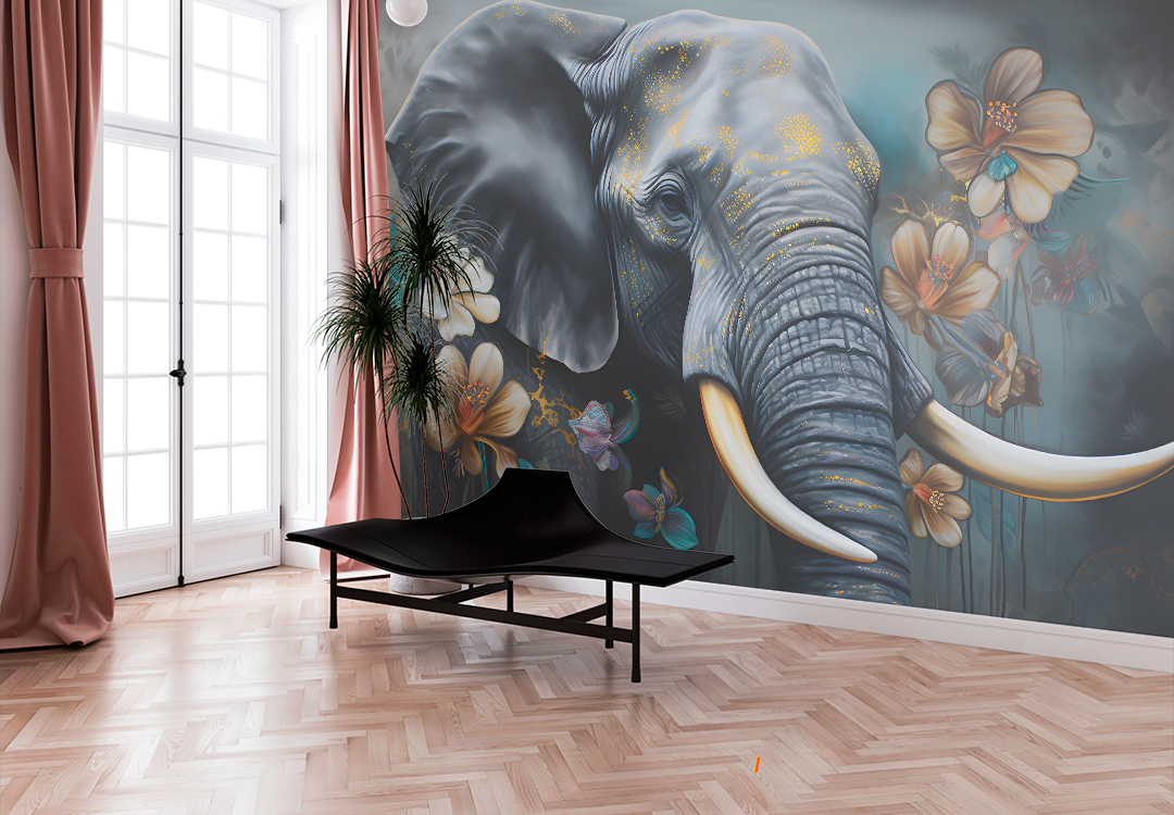 Decorate your wall with this Elephant with Flowers Wall Mural, perfect for placing in your favorite spot at home to bring a beautiful touch of .