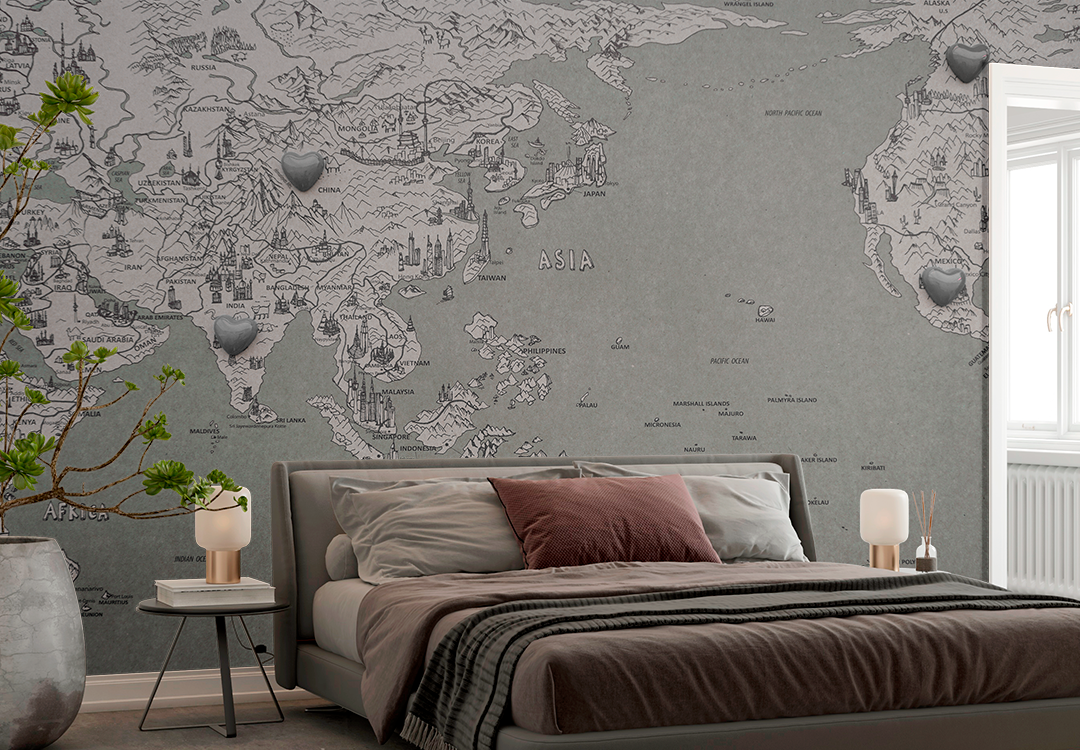 Decora tu pared con este Fotomural Mapamundi Gris ideal para colocarlo en el lugar preferido de tu casa para darle un bonito color .