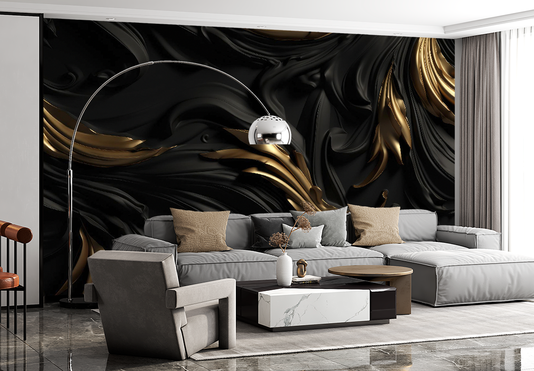 Décorez votre mur avec ce Murale photo 3D abstraite noire et dorée, idéal à placer dans votre endroit préféré de la maison pour y apporter une belle touche de .