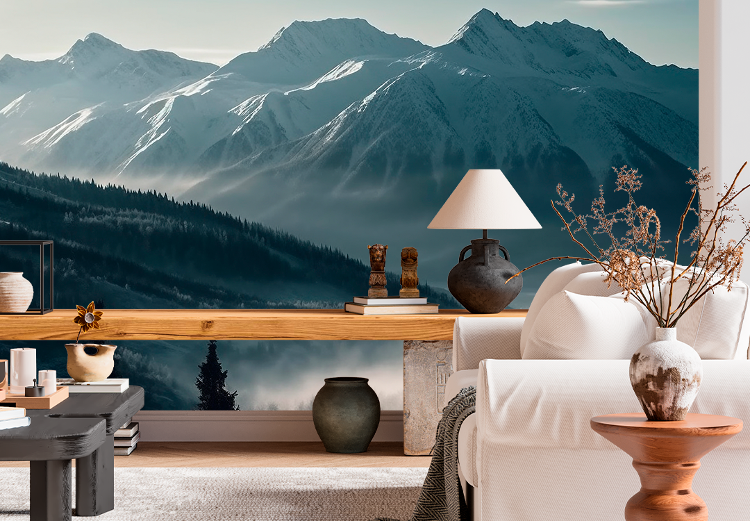 Décorez votre mur avec ce Papier Peint Photo Paysage Montagnes Bleues, idéal à placer dans votre endroit préféré de la maison pour y apporter une belle touche de .
